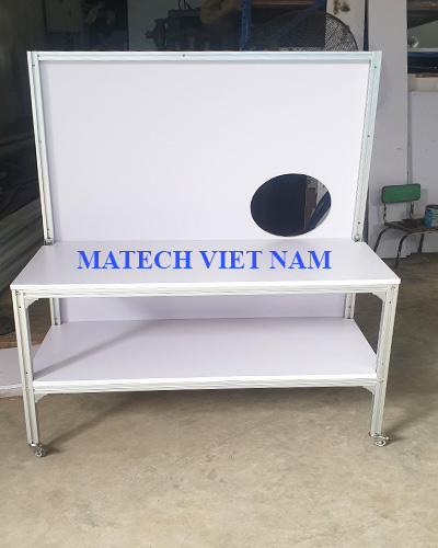 Matech gia công bàn thao tác khung nhôm và các loại bàn thao tác khác theo yêu cầu đối tác đưa ra. Sản phẩm được sản xuất trên máy móc hiện đại, độ chính xác cao, giá tại xưởng sản xuất nên đảm bảo mang đến cho khách hàng sản phẩm chất lượng với giá thành cạnh tranh. Không chỉ có bàn thao tác, Matech còn gia công băng tải PVC, băng tải PU, băng tải con lăn, giá kệ để hàng, xe đẩy hàng và nhiều sản phẩm gia công cơ khí khác.