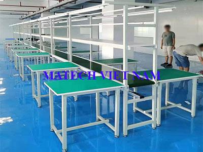 Công ty Matech chuyên thiết kế và sản xuất bàn thao tác khung thép chống tĩnh điện theo yêu cầu, kết hợp băng tải PVC, xe đẩy, giá kệ và các thiết bị phụ trợ trong nhà xưởng. Sản phẩm được gia công chính xác, giá thành cạnh tranh và thời gian gia công nhanh chóng. Quý khách hàng cần trao đổi và báo giá trực tiếp, vui lòng inbox số 0984 856 967 hoặc 0978 354 583. Matech sẽ báo giá trong thời gian sớm nhất.