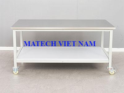 Bàn thao tác khung thép mặt gỗ 2 tầng có bánh xe do Matech sản xuất theo yêu cầu khách hàng là một giải pháp linh hoạt, phù hợp cho nhiều môi trường làm việc như xưởng sản xuất, kho hàng, phòng kỹ thuật, hoặc các ngành công nghiệp cần di chuyển dễ dàng. Bánh xe giúp di chuyển bàn một cách nhẹ nhàng từ nơi này đến nơi khác, bộ phận này sang bộ phận khác mà không tốn nhiều sức lao động của con người.