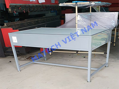 Ảnh bàn thao tác kiểm tra sản phẩm khung thép có kính tán sáng