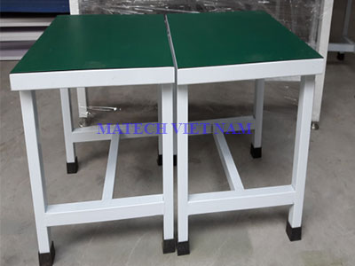 - Mặt bàn chính: thép tấm chấn gấp hàn cố định mặt bàn. Trên mặt bàn có thảm cao su chống tĩnh điện màu xanh dày 2mm