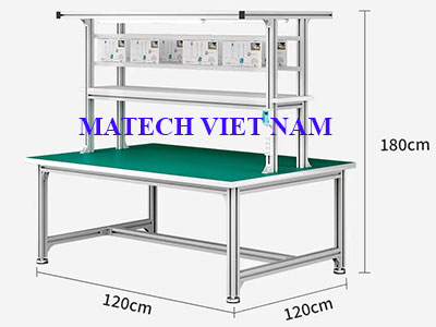 Bàn thao tác nhôm định hình có đèn hai bên là một thiết bị chuyên dụng được sử dụng trong các ngành công nghiệp, đặc biệt là trong ngành công nghiệp điện tử. Đây là một loại bàn làm việc được thiết kế để hỗ trợ việc thao tác, gia công, kiểm tra và lắp ráp các chi tiết điện tử.