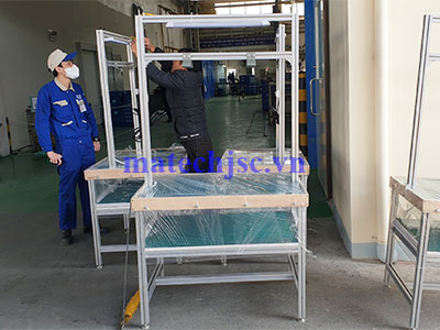 Bàn thao tác nhôm định hình sản xuất cho công ty Parker của Nhật, chuyên cung cấp các sản phẩm linh kiện điện tử. Ngoài ra, Matech còn cung cấp cả xe đẩy hàng, băng tải pvc, bàn thao tác khung thép cho công ty này.