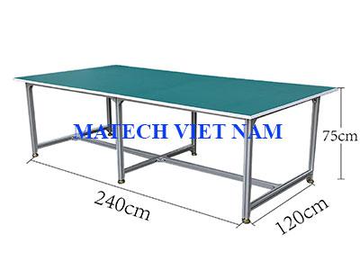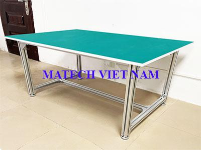 - Phần khung bàn: lắp ghép từ nhôm thanh định hình 40x40mm. Nhôm không khoan lỗ, lắp ghép lại với nhau bằng ke góc nhôm 40x40 chuyên dùng.