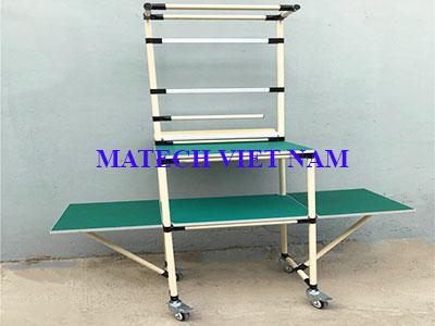 Bàn thao tác ống thép bọc nhựa có mặt phụ và bánh xe di chuyển