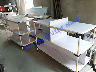 Bàn thao tác ống thép bọc nhựa nhiều mặt gỗ MDF