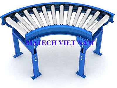 Băng tải con lăn cong khung thép tăng chỉnh chiều cao