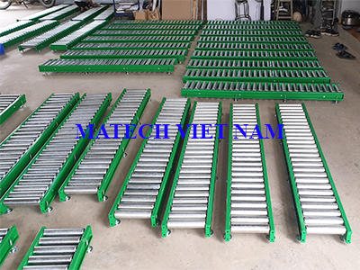 Băng tải con lăn tự do trong ảnh được Matech Việt Nam sản xuất và lắp đặt cho công ty Daikin ở Yên Mỹ, Hưng Yên, chuyên dùng để đẩy pallet hàng trên băng tải. Bao gồm 40 bộ băng tải con lăn dài 2 mét với các thông số như sau:
