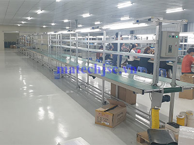 Băng tải PVC khung nhôm kèm bàn thao tác