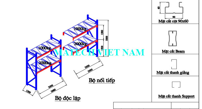 Ngoài ra, còn nhiều kích thước khác nhau, tùy theo nhu cầu cần sử dụng, diện tích kho hàng, kích thước sản phẩm đặt lên kệ, Matech sẽ thiết kế kích thước giá kệ tiêu chuẩn phục vụ khách hàng.