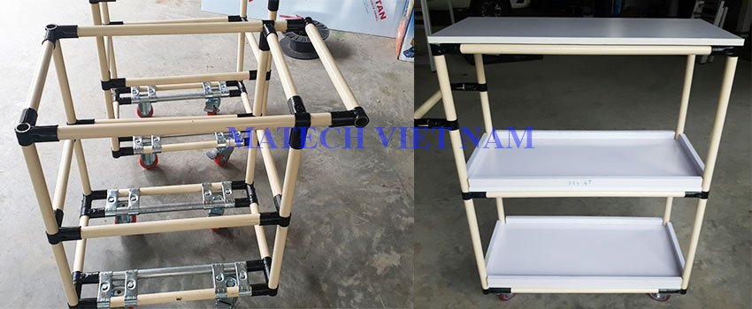 Khung và xe đẩy ống thép bọc nhựa lắp ráp hoàn thiện