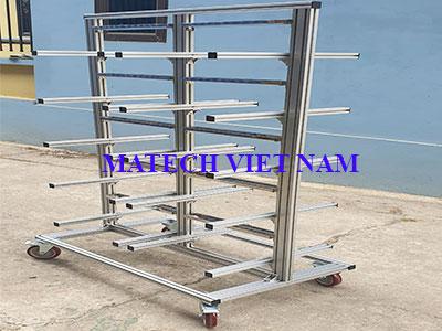 Matech Việt Nam là một đơn vị chuyên sản xuất các loại xe đẩy hàng công nghiệp, bao gồm cả xe đẩy khung nhôm định hình. Phần khung của xe thường được làm từ nhôm thanh định hình như 4040, 3030, 3060, 4080 hoặc các loại khác tùy thuộc vào tải trọng yêu cầu. Bánh xe được lựa chọn với đường kính phù hợp để đảm bảo di chuyển linh hoạt và an toàn trong nhà xưởng của doanh nghiệp.